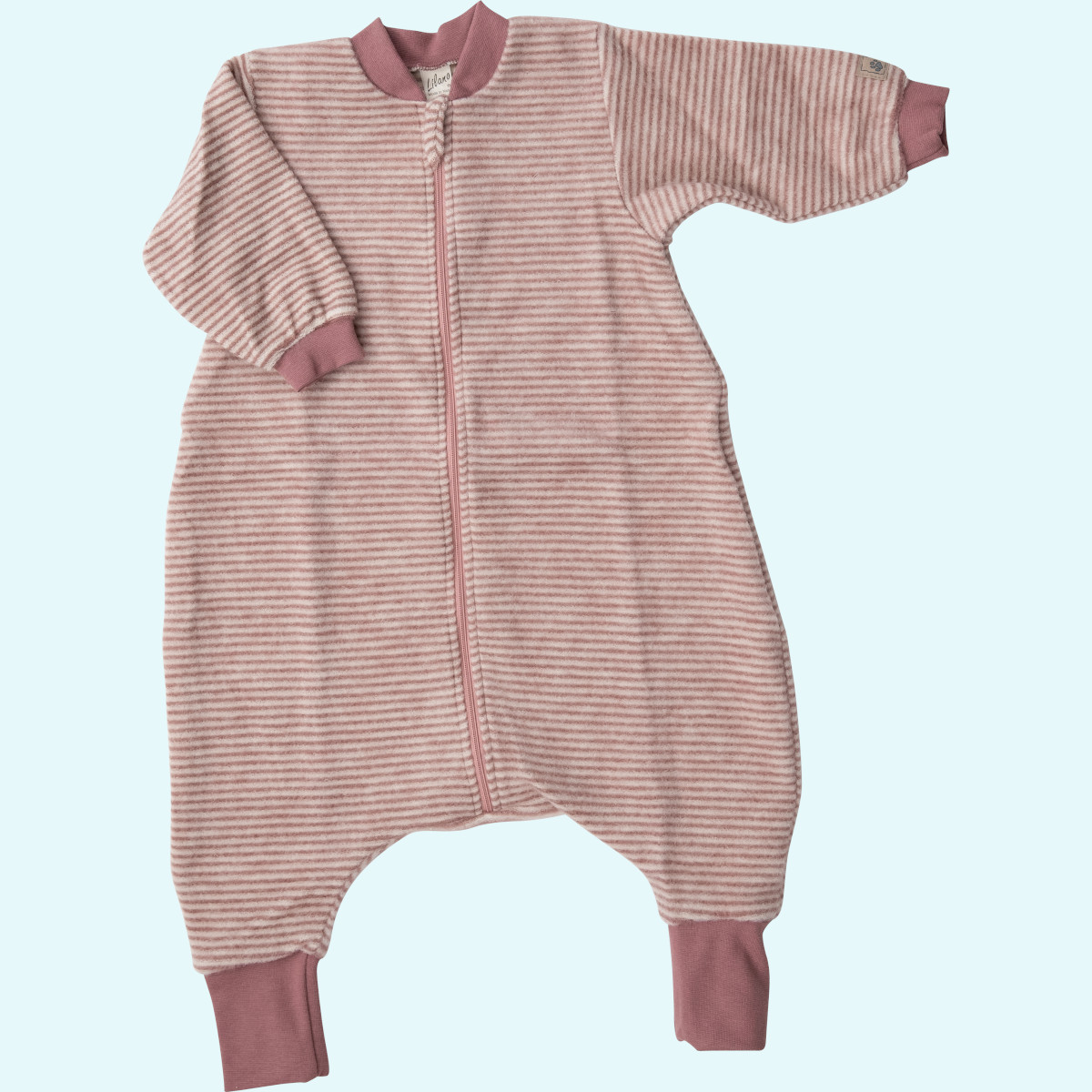 Der Baby Schlafsack hat am Halsausschnitt beginnend einen bis zum Boden verlaufenden Reißverschluss für ein einfaches und bequemes An-/Ausziehen.