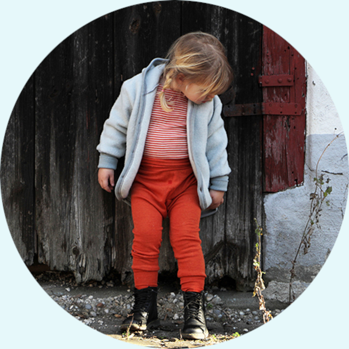 Hinweis zum Schnitt: die Jacke ist hinten länger geschnitten, damit es der Rücken beim Spielen und Toben angenhem warm hat, Wollfleece wächst etwas mit dem Kind mit